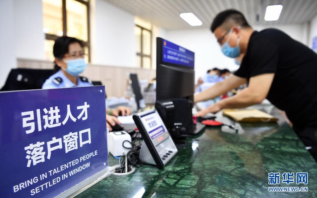 4月2日,外省人員在海口市公安局美蘭分局人口和出入境管理服務(wù)中心辦理引進人才落戶業(yè)務(wù)。新華社記者 郭程 攝