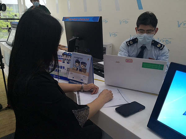 4月15日,澳門人歐陽(yáng)圓圓在橫琴新區(qū)辦稅服務(wù)廳辦理業(yè)務(wù)。李申 攝