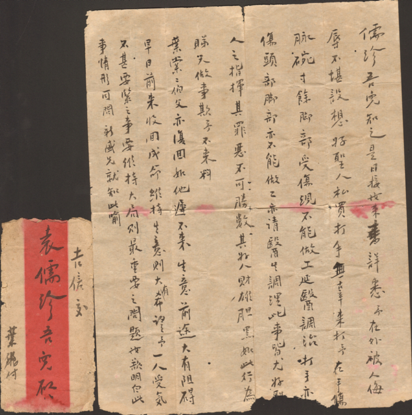 △袁葉麗寫給兒子的信(信中提到在外被人侮辱)