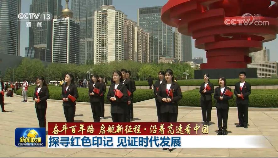 青銀高速是連接東部沿海城市和中西部地區的重要通道,從山東向西經過河北、山西、陜西,最終抵達寧夏銀川,全長1510公里。在青銀高速的起點青島,青年學子正在五四廣場舉辦朗誦活動,追憶革命先輩。100多年前,偉大的五四運動爆發,為中國共產黨的建立做了思想上的準備。