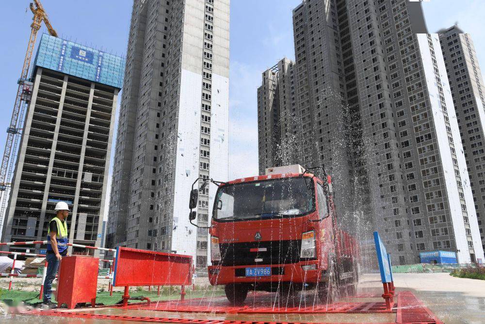 ↑ 在甘肅省蘭州市中建三局一處建設工地上,感應式的洗車臺利用循環再生水沖洗車輛,并對污水再次回收利用(5月12日攝)。