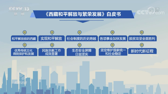 今天(21日)發(fā)布的《西藏和平解放與繁榮發(fā)展》白皮書共分為十章,分別從和平解放前的西藏、實現(xiàn)和平解放、社會制度的歷史跨越、各項事業(yè)加快發(fā)展、脫貧攻堅全面勝利、優(yōu)秀傳統(tǒng)文化得到保護(hù)和發(fā)展、民族宗教工作成效顯著、生態(tài)安全屏障日益堅實、堅定維護(hù)國家統(tǒng)一和社會穩(wěn)定、新時代新征程10個方面進(jìn)行闡述,回顧歷史進(jìn)程、展示偉大成就,全面立體真實展現(xiàn)社會主義新西藏。