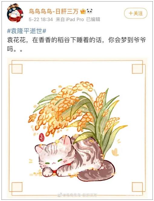 昨天,“雜交水稻之父”、中國工程院院士、“共和國勛章”獲得者袁隆平逝世,享年91歲。今天凌晨,@烏合麒麟 在微博發(fā)布了自己的最新作品緬懷袁隆平,畫面下方用了袁隆平的原話,“我一直有兩個夢想,一個是禾下乘涼夢,一個是雜交水稻覆蓋世界夢。”