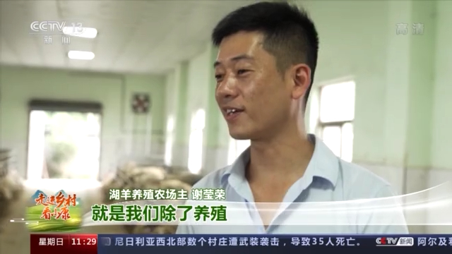 湖羊養殖農場主 謝瑩榮:我們這個羊舍是專門養的公羊,我們做紅燒羊肉的。還有一部分小母羊,是供給新疆四川內蒙古的種羊。