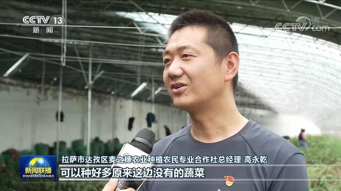 拉薩市達(dá)孜區(qū)麥之穗農(nóng)業(yè)種植農(nóng)民專業(yè)合作社總經(jīng)理 高永乾:可以種好多原來這邊沒有的蔬菜,現(xiàn)在這個(gè)一畝地的收入要高一些。大家其樂融融的。