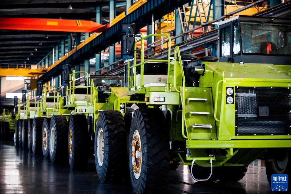 這是內蒙古包頭市北重集團北方重型汽車股份有限公司某型礦用車裝配線(2015年12月4日攝)。新華社記者 連振 攝