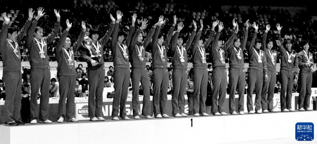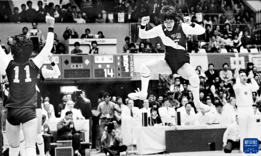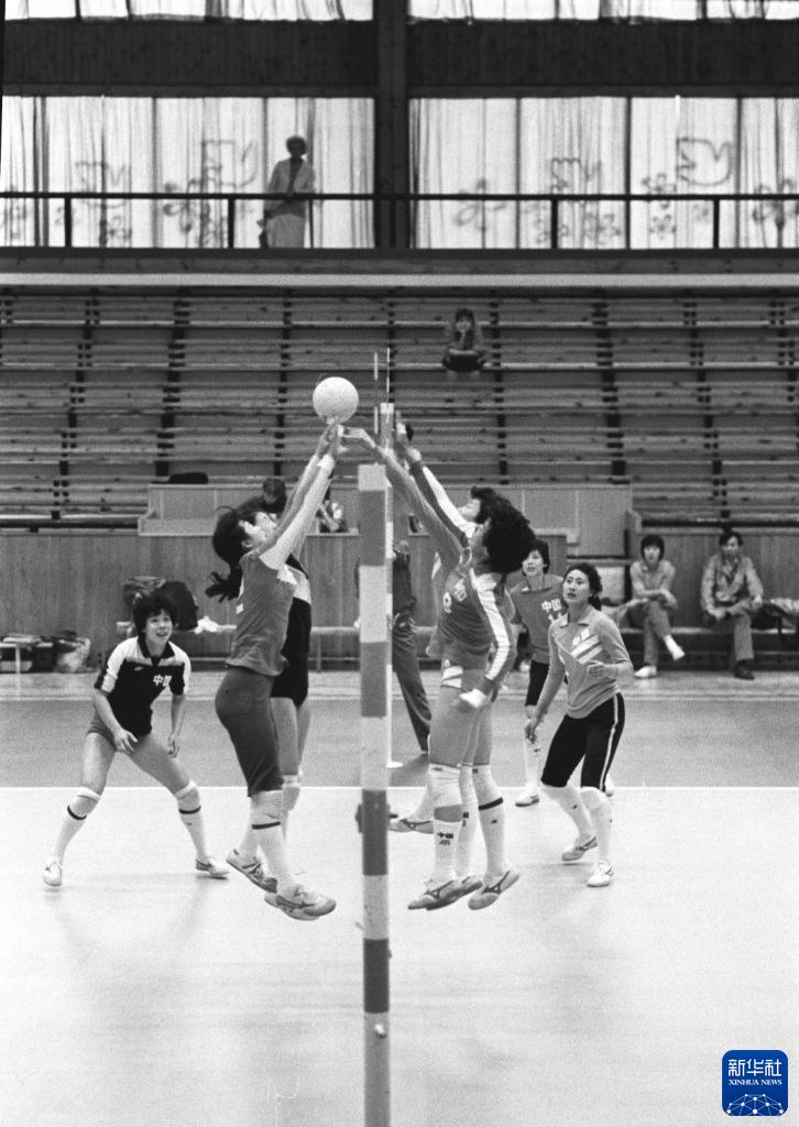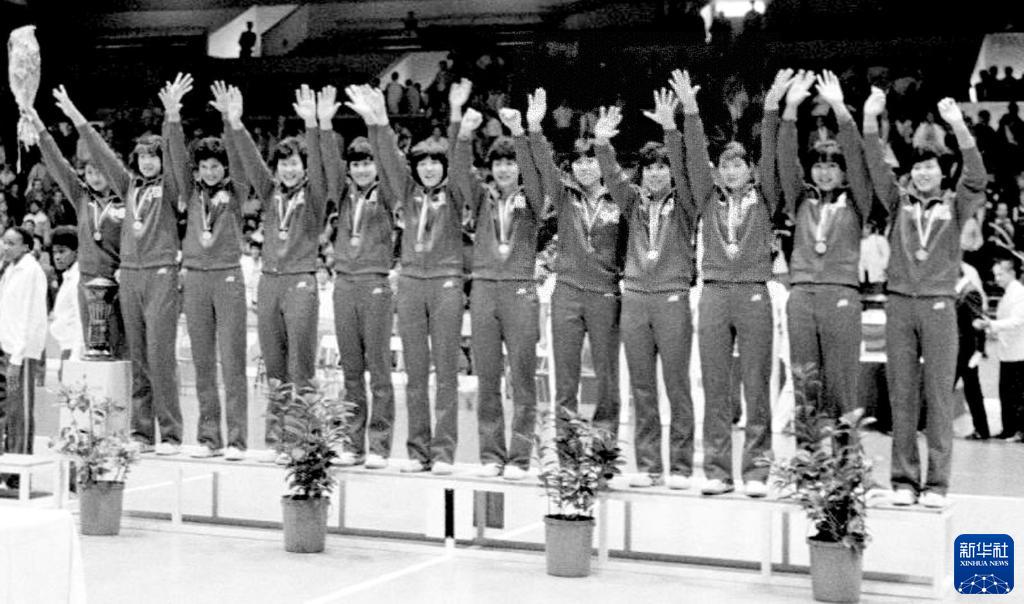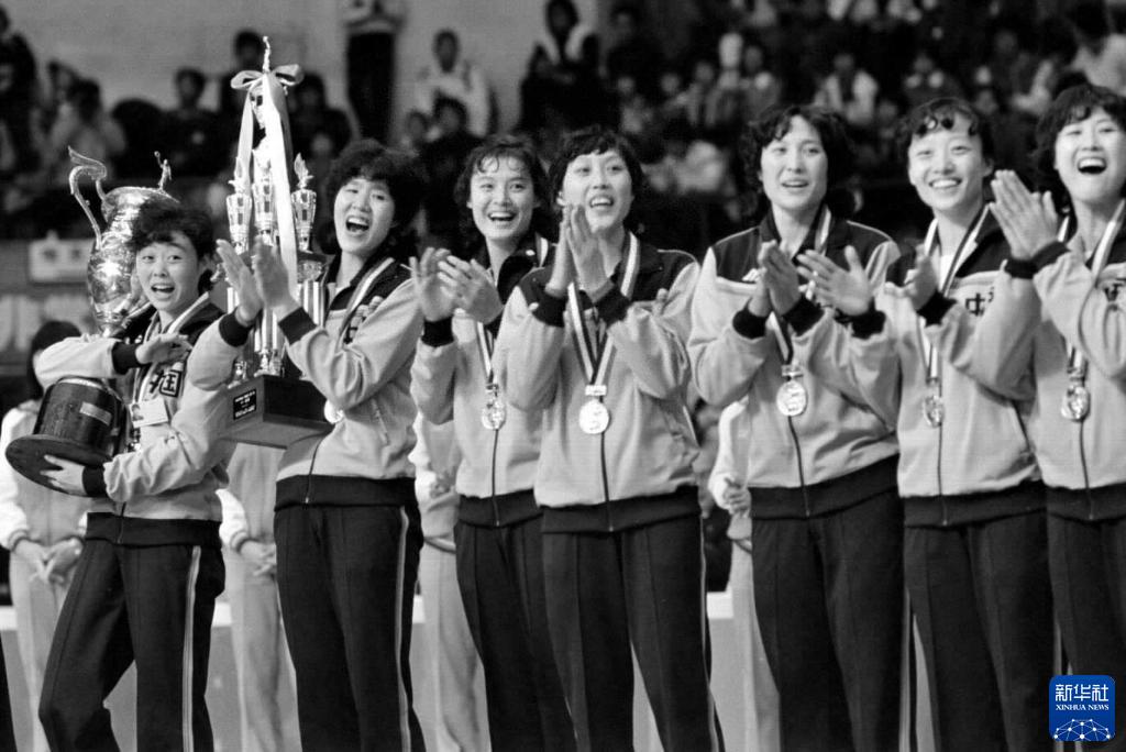 1981年11月16日,中國(guó)女排在日本舉行的第三屆女排世界杯比賽中,以七戰(zhàn)七勝的成績(jī)榮獲冠軍。新華社發(fā)
