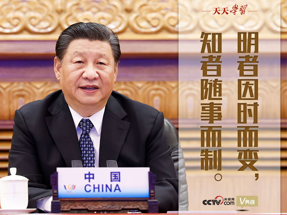 9月9日晚,金磚國家領導人第十三次會晤以視頻方式舉行。國家主席習近平發表題為《攜手金磚合作 應對共同挑戰》的重要講話,就推動金磚合作提出中國倡議、宣布務實舉措,為金磚合作注入新動力,為促進全球經濟復蘇帶來信心。在講話結尾,習近平主席引用古語“明者因時而變,知者隨事而制”,號召五國在推進金磚合作的道路上,要順應時代變化,做到與時俱進,為金磚國家加強更高質量務實合作指明了方向。