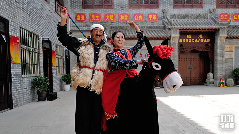 △綏德縣非遺陳列館,陜北秧歌表演演員。(總臺(tái)國(guó)廣記者李晉拍攝)