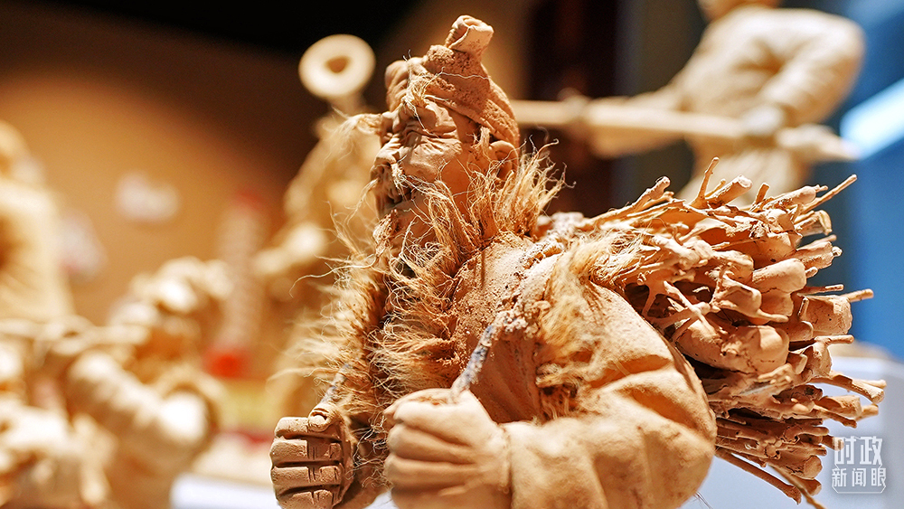 △綏德泥塑。由于陜北黃土質(zhì)地松散、不易成型,工匠在和泥過(guò)程中添加蜂蜜、食用油和棉花,用來(lái)增加黃土的粘度和韌性。(總臺(tái)央視記者張宇拍攝)
