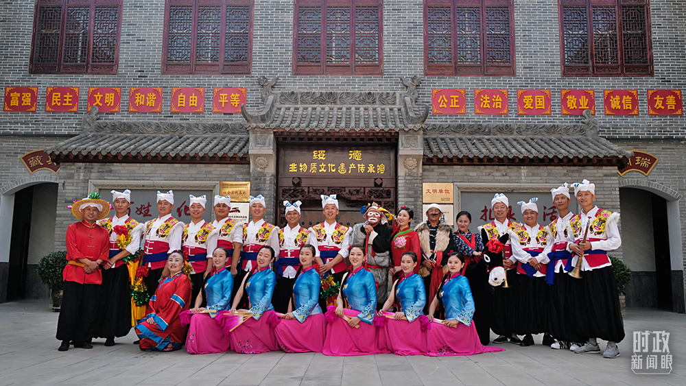 △當(dāng)天在非遺陳列館為總書(shū)記表演的演員合影。(總臺(tái)國(guó)廣記者李晉拍攝)