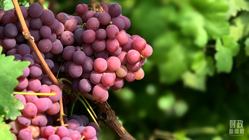 △“紅地球”葡萄品種是郝家橋村的脫貧產(chǎn)業(yè)之一。(總臺(tái)央視記者馬超拍攝)