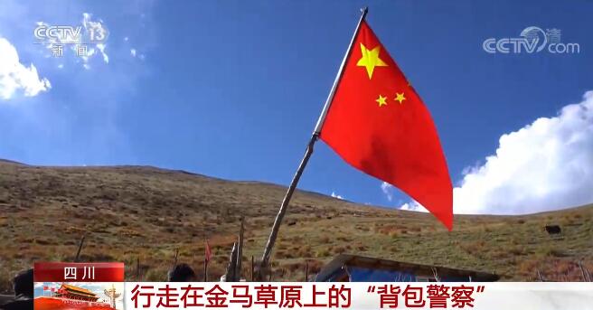 經過4個多小時的跋涉,民警們到達了牧民干角家。這里的牧民都有懸掛國旗的習慣,國慶到來,格桑扎西專門給群眾準備了一面嶄新的國旗。