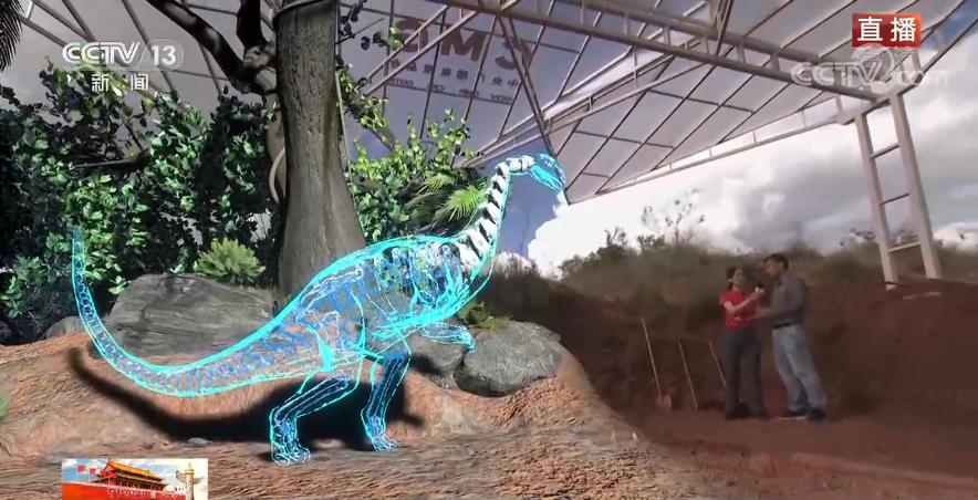 為了能夠更好地呈現科學發現的細節,也為了讓您更能身臨其境感受侏羅紀世界,我們在前方也特別搭建了沉浸式混合現實系統,在科考現場就能實時看到根據骨骼化石復原的恐龍模樣,實現野外互動直播。一眼穿越億萬年。