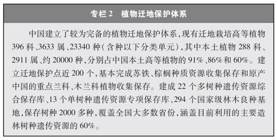 中國持續加大遷地保護力度,系統實施瀕危物種拯救工程,生物遺傳資源的收集保存水平顯著提高,遷地保護體系日趨完善,成為就地保護的有效補充,多種瀕危野生動植物得到保護和恢復。