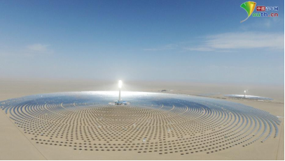 提及太陽能熱發電原理,該企業有關負責人介紹說,塔式太陽能熱發電系統利用中央集熱塔作為吸熱器的承載基礎,集熱塔周圍布置一定數量的定日鏡,定日鏡將太陽光反射至集熱塔頂的吸熱器上,加熱吸熱器內保持流動的傳熱流體到500-1000℃,高溫傳熱流體通過蒸汽發生系統產生高溫高壓的蒸汽推動汽輪發電機組發電。自2018年底并網發電以來,在11小時熔鹽儲熱系統支持下,可24小時連續發電,每年可發電3.9億度。