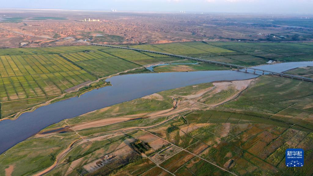 這是2021年8月28日拍攝的黃河寧夏銀川段景色(無人機照片)。新華社記者 王鵬 攝