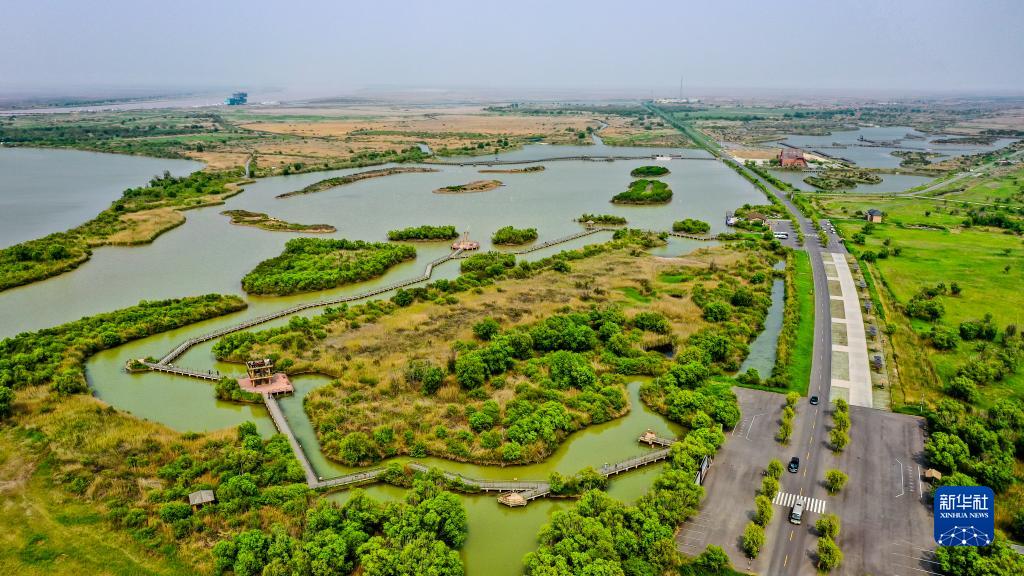 2021年5月13日拍攝的山東黃河三角洲國家級自然保護區(qū)景色(無人機照片)。新華社記者 郭緒雷 攝