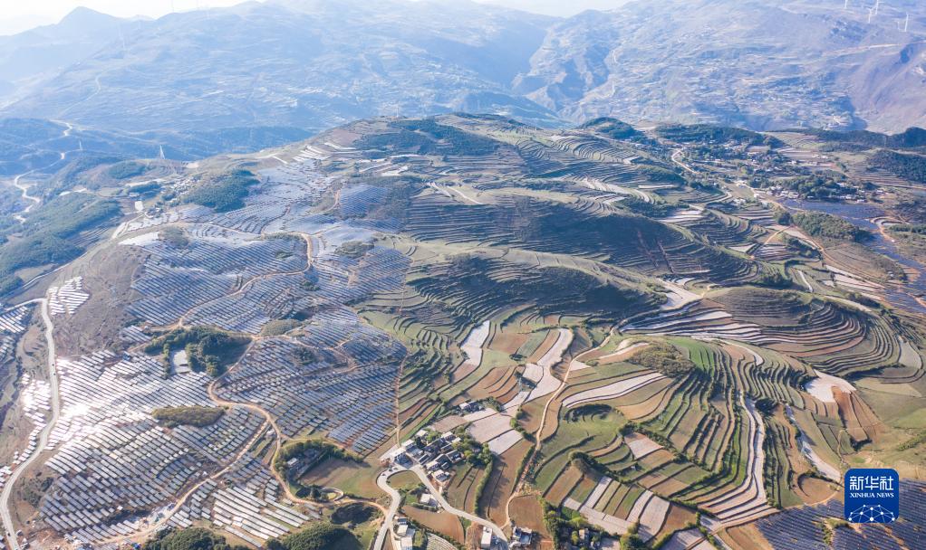 這是貴州省威寧縣平箐光伏電站和大海子風(fēng)電場(2018年3月13日攝)。新華社記者 楊文斌 攝