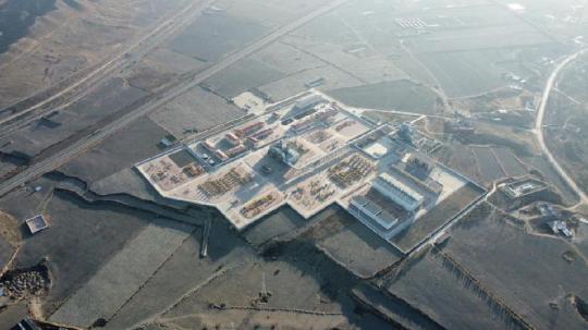 位于騰格里沙漠邊緣的“西氣東輸”中衛壓氣站(無人機拍攝,新華社記者靳赫 攝)