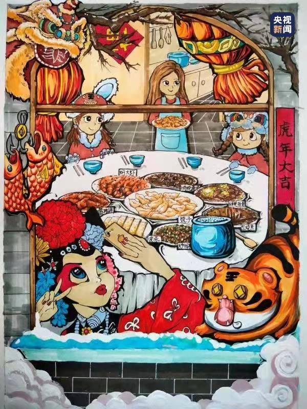 還有同學用剪紙的形式曬出家鄉的年夜飯
