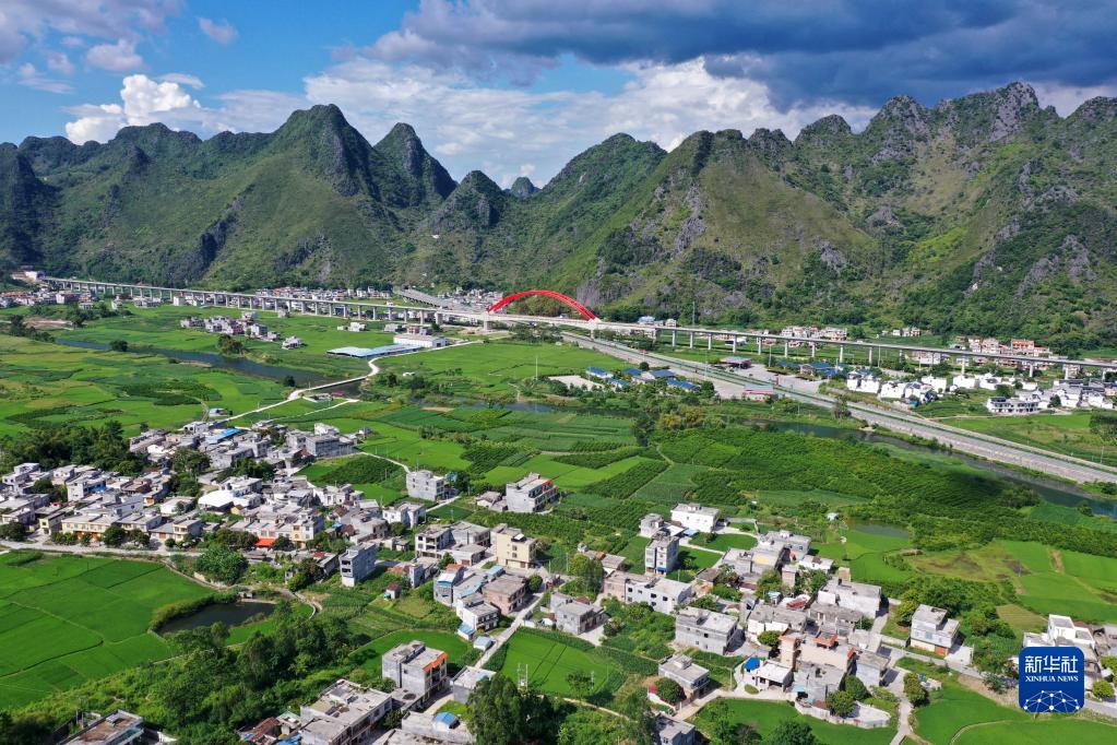 這是廣西都安瑤族自治縣高嶺鎮(zhèn)境內(nèi)的鄉(xiāng)村風(fēng)貌(2021年8月31日攝,無(wú)人機(jī)照片)。近年來(lái),廣西壯族自治區(qū)生態(tài)文明建設(shè)成果喜人,八桂大地一年四季生機(jī)盎然,山川處處景象宜人。新華社記者 陸波岸 攝