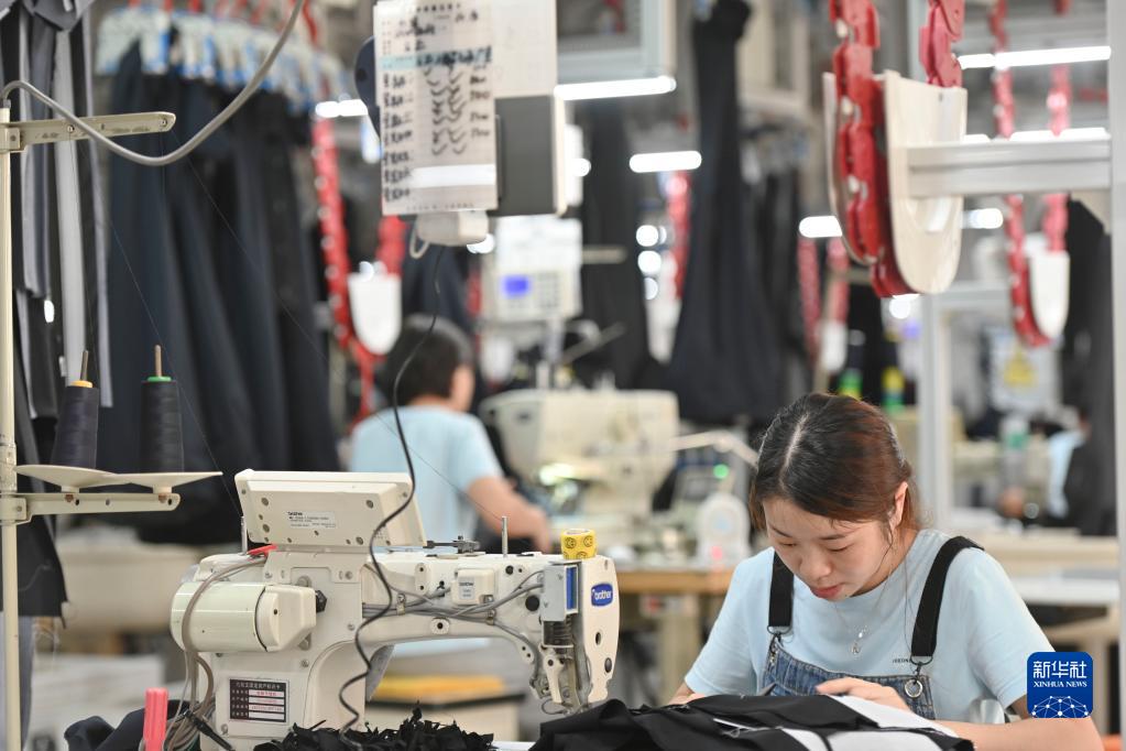 在位于福建省泉州市經(jīng)濟(jì)技術(shù)開(kāi)發(fā)區(qū)的九牧王西褲智能化生產(chǎn)車(chē)間,工人在自動(dòng)化西褲吊掛流水線(xiàn)上作業(yè)(2021年7月30日攝)。近年來(lái),泉州市稅務(wù)部門(mén)積極落實(shí)減稅降費(fèi),出臺(tái)一系列穩(wěn)定工業(yè)、扶持外貿(mào)、鼓勵(lì)企業(yè)研發(fā)創(chuàng)新的政策,服務(wù)實(shí)體經(jīng)濟(jì)發(fā)展。新華社記者 宋為偉 攝