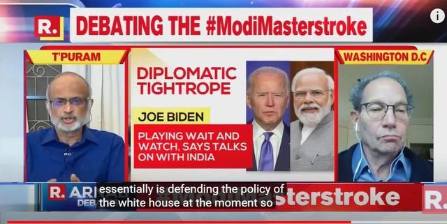 在節(jié)目中,庫(kù)普坎批評(píng)印度“不能再做‘騎墻派’”,遭到阿納布回懟“不要教育我們”,并怒斥“美國(guó)沒有資格假裝是民主和人權(quán)的捍衛(wèi)者”。當(dāng)庫(kù)普坎說到“你看到西方國(guó)家已經(jīng)團(tuán)結(jié)起來對(duì)抗俄羅斯了 ,三分之二的國(guó)家都在反對(duì)俄羅斯”時(shí),印度主持人阿納布搖頭連說“不是的”,已經(jīng)忍不住想要插話進(jìn)去,但沒能成功。在庫(kù)普坎結(jié)束發(fā)言后,阿納布首先表示:“我希望你能讓我體面地把話說完!薄笆紫,恕我直言,庫(kù)普坎教授,你的發(fā)言在道德立場(chǎng)上站不住腳!你們美國(guó)人沒有資格,美國(guó)沒有資格假裝是民主和人權(quán)的捍衛(wèi)者。你們才是暴行的罪魁禍?zhǔn)住!敝鞒秩税⒓{布大聲呵斥。他隨即提到當(dāng)初奧巴馬在利比亞內(nèi)戰(zhàn)時(shí)伙同盟友攪亂局勢(shì),使內(nèi)戰(zhàn)延續(xù)了十年,還列舉了美國(guó)對(duì)多個(gè)國(guó)家發(fā)動(dòng)戰(zhàn)爭(zhēng),包括伊拉克、敘利亞、也門、索馬里、尼日爾,并用無人機(jī)殺害了上千人!澳阏f到印度,我們是一個(gè)大國(guó),我們不是你們的‘衛(wèi)星國(guó)’,所以不要教育我們?cè)撟鍪裁。我們?huì)管好自己的!敝鞒秩讼驇(kù)普坎說道。3月21日,該節(jié)目就美方發(fā)出的“印度站在歷史錯(cuò)誤一邊”言論展開了辯論。庫(kù)普坎教授再次挑戰(zhàn)了印度媒體的神經(jīng)。在這次的節(jié)目里,主持人阿納布認(rèn)為在烏克蘭問題上,印度的對(duì)外政策是獨(dú)立和中立的。他說一些關(guān)鍵國(guó)家面對(duì)這一的危機(jī)時(shí),保持中立是必要的。庫(kù)普坎教授在回應(yīng)中聲稱,印度在選邊站(India is choosing sides)。并質(zhì)問印方,當(dāng)烏克蘭深陷危機(jī)時(shí),印度在哪?印度要決定他們是站在歷史的正確一邊還是錯(cuò)誤一邊?印度為何不站出來“譴責(zé)”俄羅斯?這時(shí)主持人阿納布先問了一個(gè)問題:“美國(guó)為什么不對(duì)中國(guó)說同樣的話?” 隨后把問題拋給了最左邊的一名印度嘉賓。