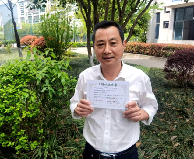 張林順展示編號為“0000001”的碳票。受訪者供圖