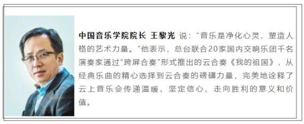 4月30日至5月4日,中央廣播電視總臺聯(lián)合中國交響樂團(tuán)、中國愛樂樂團(tuán)、國家大劇院管弦樂團(tuán)、中央歌劇院交響樂團(tuán)、中央芭蕾舞團(tuán)交響樂團(tuán)、中央音樂學(xué)院交響樂團(tuán)、中國音樂學(xué)院中國樂派交響樂團(tuán)、北京交響樂團(tuán)、深圳交響樂團(tuán)、杭州愛樂樂團(tuán)、廣州交響樂團(tuán)、青島交響樂團(tuán)、哈爾濱交響樂團(tuán)、蘇州交響樂團(tuán)、西安交響樂團(tuán)、武漢愛樂樂團(tuán)、蘭州交響樂團(tuán)、河北交響樂團(tuán)、貴陽交響樂團(tuán)、四川交響樂團(tuán)等20家交響樂團(tuán),連續(xù)五天每天晚間推出一場《音樂傳遞溫暖,堅持就是勝利——“五一”云上音樂會》,并以“跨屏合奏”《我的祖國》的方式完美收官。