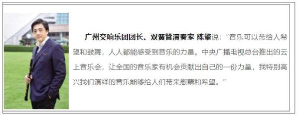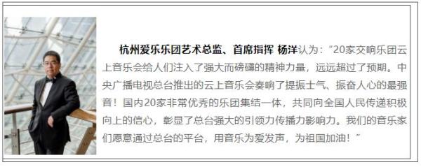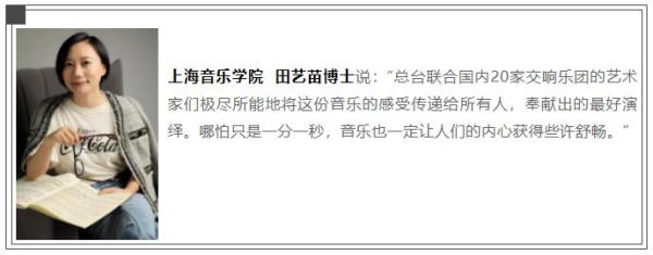 疫情當(dāng)前,媒體人和音樂人同心同向同行,從策劃到邀約,從錄制到播出,只有短短不到兩周的時間,各樂團(tuán)的演奏家和節(jié)目組齊心協(xié)力,克服錄制困難,不斷創(chuàng)新編排形式,最終實現(xiàn)全國20家交響樂團(tuán)匯聚云端,綻放華章。