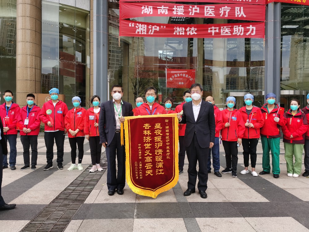 為湖南省援滬中醫(yī)醫(yī)療隊(duì)送上錦旗
