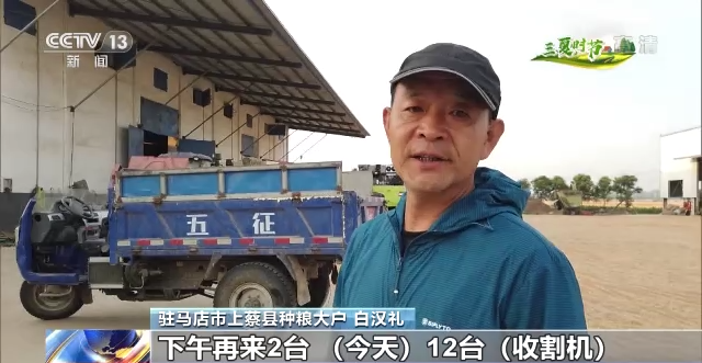 駐馬店市上蔡縣種糧大戶 白漢禮:今天上午10臺車,下午再來2臺,12臺車,明天再增加2臺。
