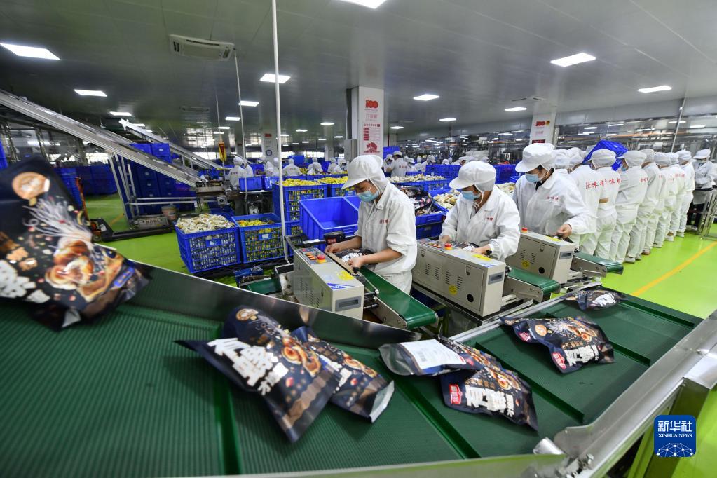 在廣西柳州市螺螄粉生產(chǎn)集聚區(qū)的廣西善元食品有限公司螺螄粉生產(chǎn)車間,工人在生產(chǎn)線上包裝產(chǎn)品(1月6日攝)。新華社記者 黃孝邦 攝