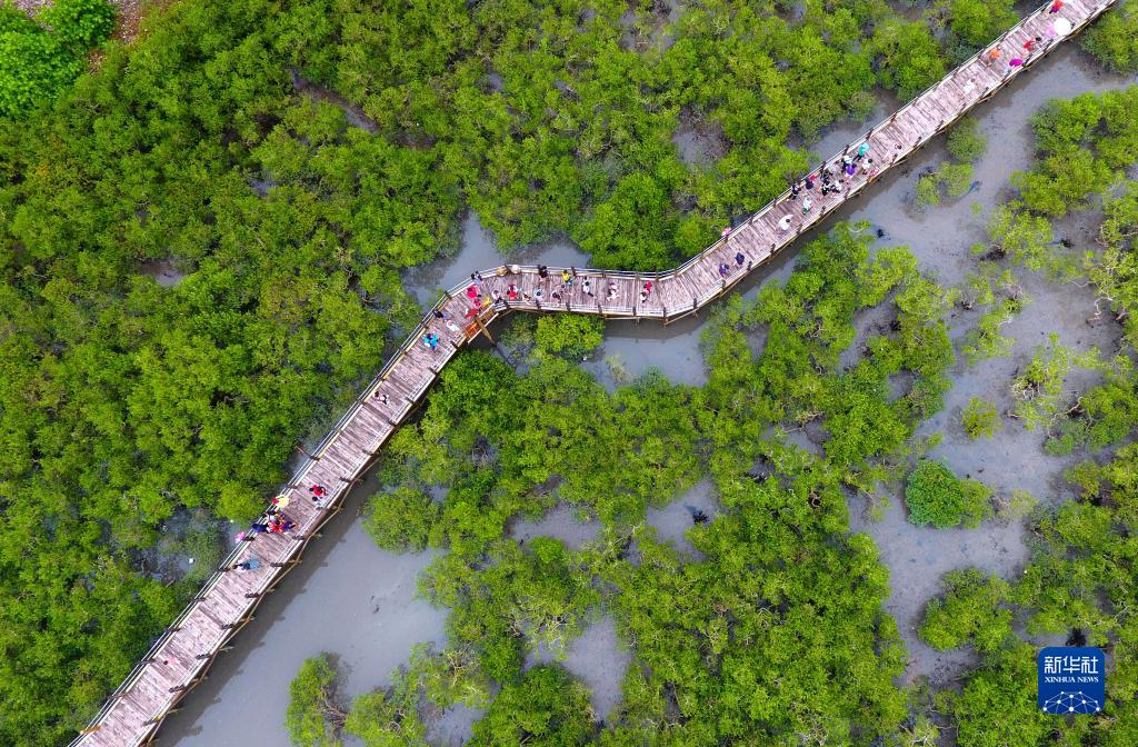 這是在廣西北海市金海灣紅樹林生態(tài)休閑區(qū)拍攝的紅樹林(2017年8月23日攝,無人機(jī)照片)。新華社記者 黃孝邦 攝