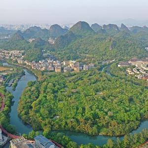 廣西桂林市城區(qū)風(fēng)光(4月10日攝,無人機(jī)照片)。新華社記者 周華 攝