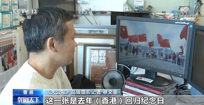 《大公報》高級攝影記者 蔡文豪:我是蔡文豪,《大公報》的攝影記者,在這里工作21年。我父母從小教導我們,身為中國人一定要愛國,為國家爭一口氣。1997(年)我剛畢業,還不是一個攝影記者,但是我感覺香港不一樣了。我感覺,香港就是一個新生的小孩,我拿著相機出去拍攝,到處感受這個新生的城市。所以畢業后我要找一份跟國家有關聯的工作,加入《大公報》是必然的選擇。在這里我見識到什么是文章報國,并重新認識祖國。