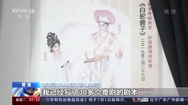 香港靈霄粵劇團(tuán)演員 謝曉瑩:我覺(jué)得粵劇的發(fā)展除了我們自己的努力,還需要去取經(jīng)、去學(xué)習(xí)。10年的時(shí)間里,我去了北京、上海、浙江、江蘇,還有很多內(nèi)地的城市,去學(xué)習(xí)戲曲的表演。整個(gè)祖國(guó)山河景點(diǎn)對(duì)我來(lái)說(shuō),都是我創(chuàng)作的靈感。我已經(jīng)寫了30多個(gè)粵劇的劇本,我覺(jué)得很幸福。