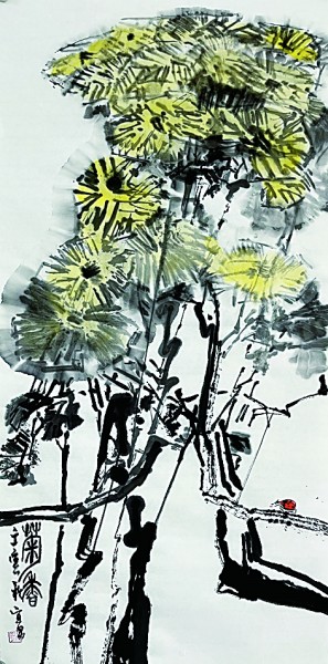 正因?yàn)樵谥袊?guó)文化中菊花很早就被賦予了濃濃的文化之氣,畫菊也成為一種傳統(tǒng),延續(xù)了千年以上。唐宋時(shí)期,黃荃、趙昌、徐熙、滕昌佑、朱紹宗等名家也都是畫菊高手,但都以工筆見(jiàn)勝,《宣和畫譜》記載,黃筌《寒菊蜀禽圖》,畫得十分精美。宋末元初的鄭思肖,以善畫蘭花著稱,其父號(hào)“菊山”,鄭思肖自號(hào)“菊山后人”,承其父志。他畫蘭亦畫菊,曾有詩(shī):“花開不并百花叢,獨(dú)立疏籬趣無(wú)窮。寧可枝頭抱香死,何曾吹落北風(fēng)中。”成為古代詠菊中的名篇。元代趙彝齋、李昭、柯九思、王若木、蘇明遠(yuǎn)、盛雪蓬、朱樗仙諸逸士也是畫菊高手。元代之后,文人畫家多以寫意取代唐宋所沿襲的工筆,另開新局,明代畫菊是以吳門畫派的陳淳和王榖祥為代表,陳淳《菊石圖》和王榖祥《翠竹黃花圖》都以菊為題材。徐渭,以大寫意畫菊擅長(zhǎng),干濕濃淡,出神入化,既把菊花的冷峻突傲,獨(dú)立自善的情態(tài)表現(xiàn)生動(dòng),又把菊花自身的和野逸之氣表現(xiàn)得透徹淋漓。清初惲壽平以“色暈水染”之法畫菊花,兼工帶寫,打破多年傳統(tǒng),自然而神態(tài)微妙。清季以來(lái)石濤、朱耷、任伯年、奚岡、惲壽平、鄭板橋、趙之謙、蒲華、虛谷、高鳳翰、徐玟、鄒一桂,以及“揚(yáng)州八怪”的羅聘、李方膺、李鱓、邊壽民、金農(nóng)等在畫菊的一項(xiàng)上都各擅勝場(chǎng),皆占一格,其后,吳昌碩金石筆法,齊白石溫潤(rùn)蘊(yùn)藉,潘天壽空間構(gòu)圖,李苦禪濃筆帶染,林風(fēng)眠中西融合,婁師白恬淡雅致。此外,還有陳師曾、張大千、王一亭、諸樂(lè)三、吳茀之、馮超然、符鐵年、汪慎生、陳之佛等近代名家,都各得其法。當(dāng)代花鳥畫創(chuàng)作也是突飛猛進(jìn),沉浸傳統(tǒng)而出新意,新氣象新意象迭出,如吳悅石、張立辰、郭石夫、喬宜男等。