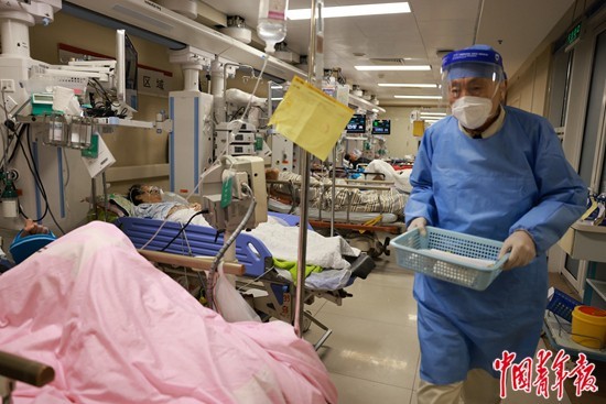 12月27日,記者在北京朝陽醫(yī)院急診科看到,診室已從3個增加至6個,專科病房“去專科化”,全部改為了綜合病房,過道里也排滿了臨時床位。急診科收治重癥患者的病房均由呼吸、重癥、急診的專家領軍,其他專科的大夫和護士支援,盡可能減少重癥病死率。“很多重癥病人慕名而來,我們也會盡最大努力收治。”朝陽醫(yī)院黨委委員、急診醫(yī)學科副主任梅雪說,“這不是平時的看病了,這像是打一場仗。”