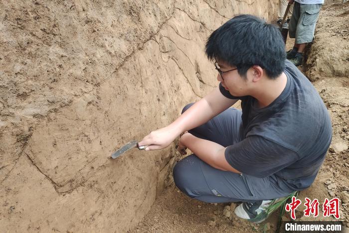 潘志威在焦家遺址的探方內刮面。(資料圖,受訪者供圖)