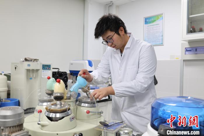 潘志威在學校陶瓷器考古實驗室使用研磨器。趙曉 攝
