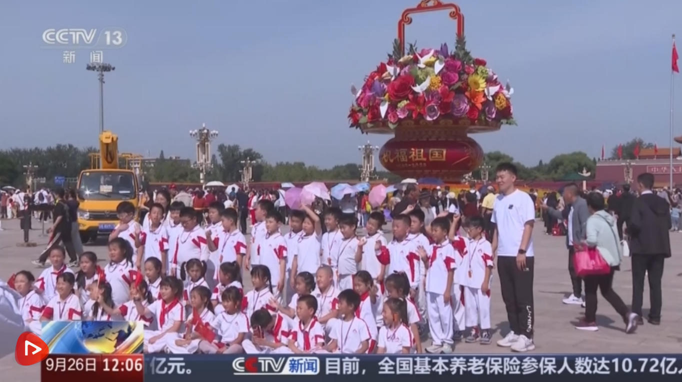 央視網(wǎng)消息:國慶中秋雙節(jié)將至,各地通過懸掛國旗、布景花卉等方式將城市裝扮一新,營造喜慶氛圍,迎接佳節(jié)到來。