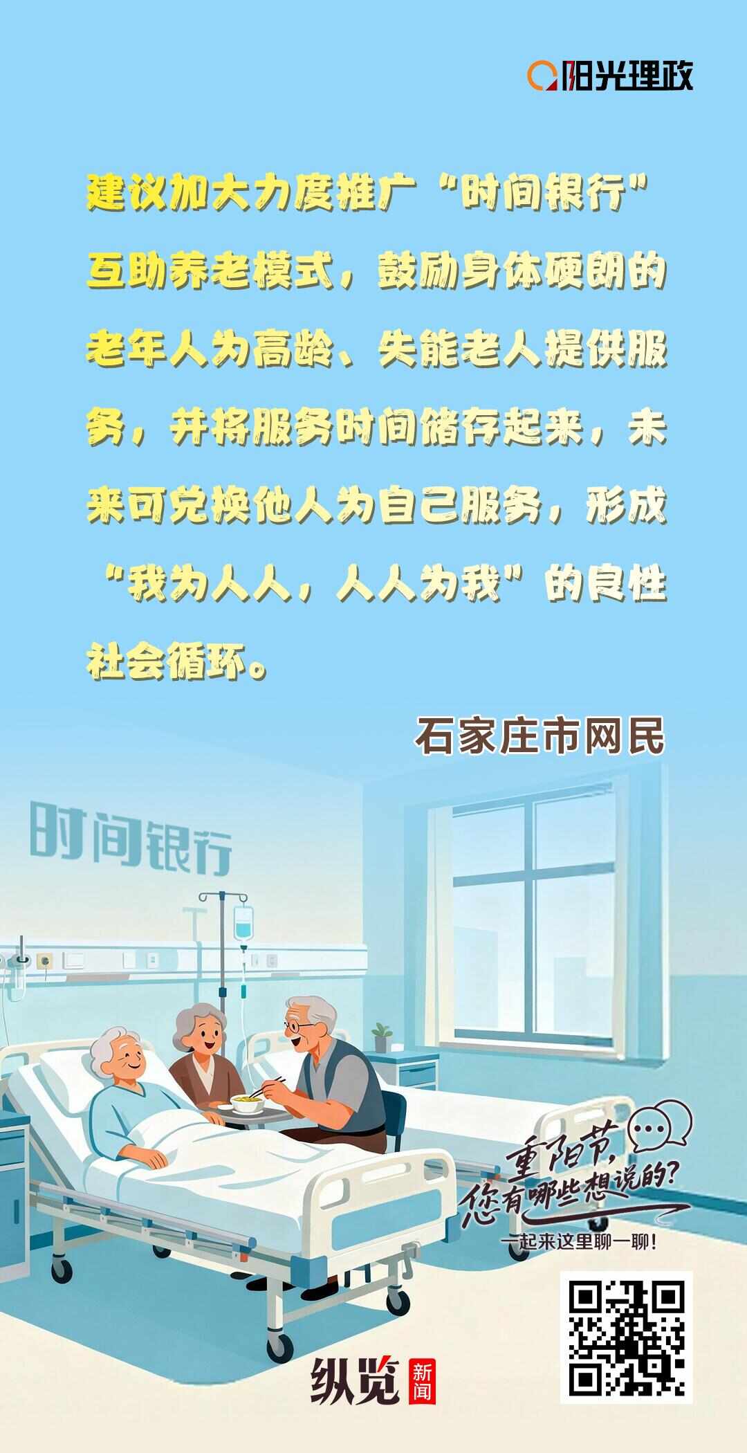 重陽節來臨,我們該如何用實實在在的行動向長輩表達愛?在縱覽新聞陽光理政平臺上,不少熱心網民已經行動起來,圍繞“如何更好地敬愛老人”這一話題,提出了許多寶貴的建議。讓我們一起看看這些充滿智慧與溫情的“金點子”。