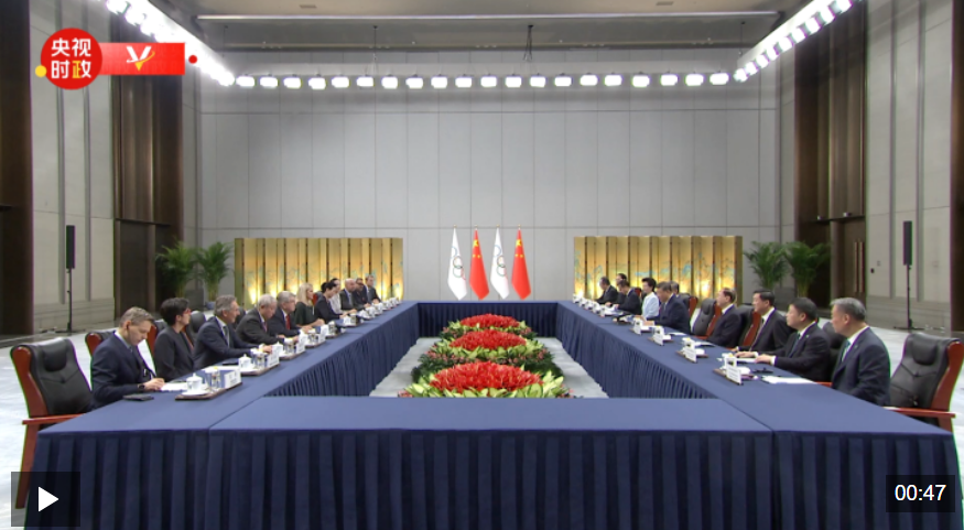 習近平指出,非常高興見到考文垂主席女士和巴赫主席先生。你們不遠萬里而來,充分體現了你們對中國體育事業的關心和支持,也體現了中國同國際奧委會之間的友好關系。今晚即將開幕的全運會是中國最大規模、最高水平的綜合性運動會。歡迎你們同中國人民一道,見證新時代中國體育事業發展的新成就和中國體育健兒的新風采。