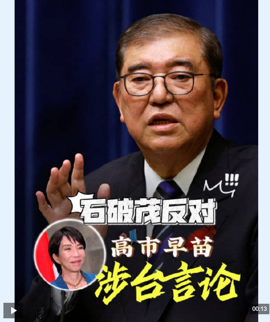 日本前首相石破茂表示,在臺灣問題上,歷屆日本政府一直在避免發(fā)表類似“如果出現(xiàn)某種情況就會這樣做”的確定性言論。日本前首相鳩山由紀(jì)夫發(fā)文強(qiáng)調(diào),臺灣就是中國的內(nèi)政問題,而日本不該干涉。日本前首相野田佳彥則在采訪中指出“這是歷代首相都在一定程度上止步的話題”,他對高市的發(fā)言“深感震驚”。