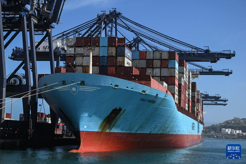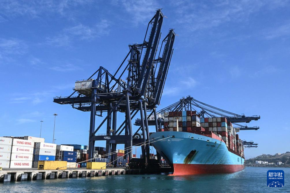 這是11月18日在智利圣安東尼奧港拍攝的服務于“車厘子快線”的貨輪。新華社發(豪爾赫·比列加斯攝)