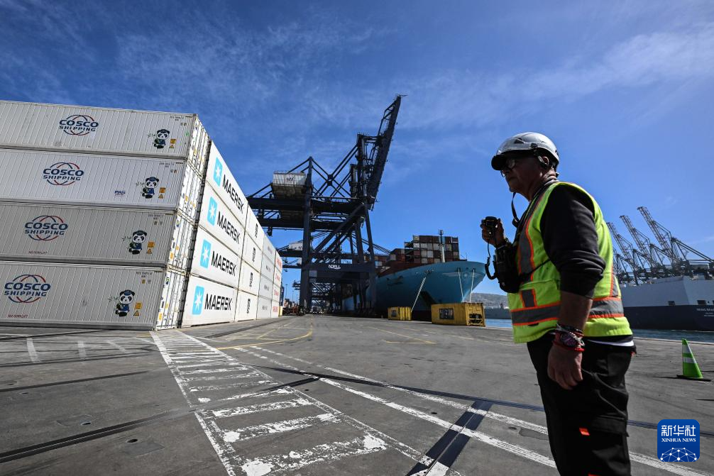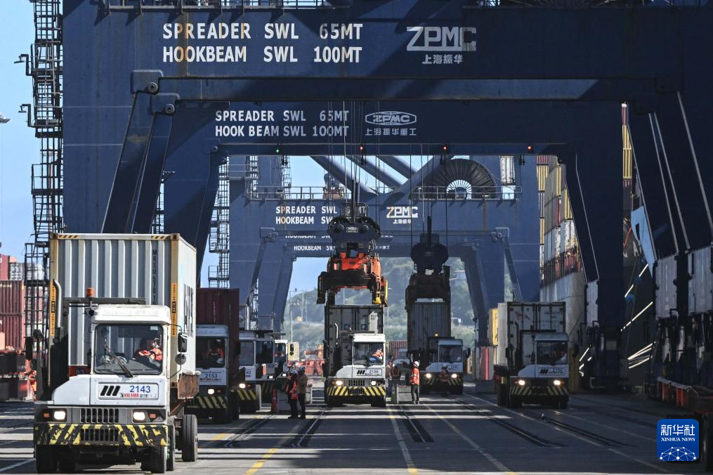 11月18日,在智利圣安東尼奧港,工人們正在進行裝卸作業。新華社發(豪爾赫·比列加斯攝)