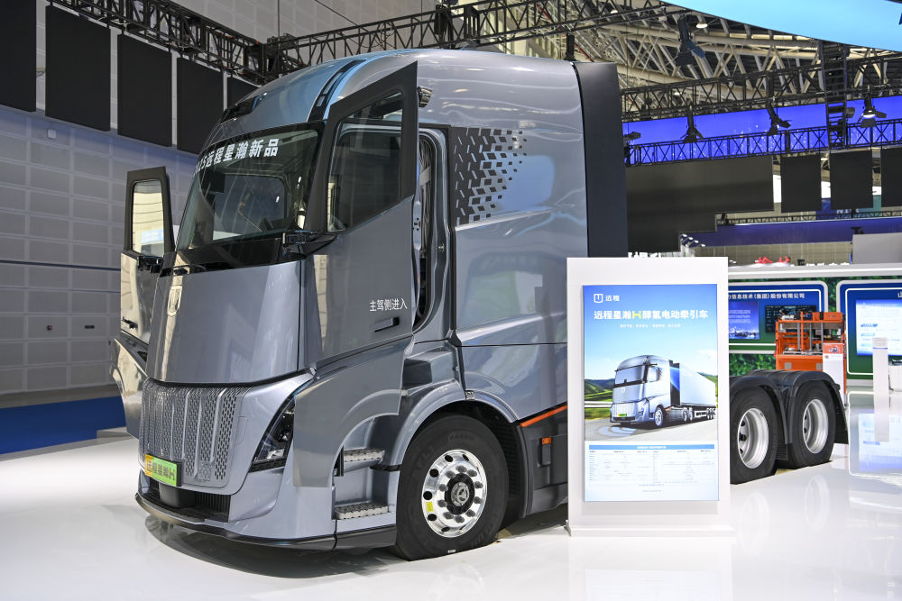 這是在2025年山西(太原)能源產業博覽會上展示的一款醇氫電動牽引車(9月27日攝)。新華社記者 楊晨光 攝