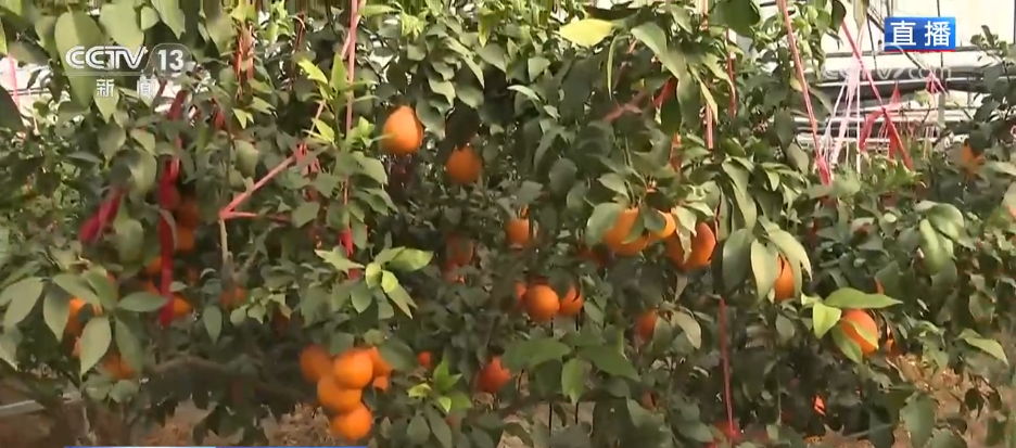 這段時間正好是當地柑橘品種紅美人的豐收時節,在這里能特別直觀地感受到,什么叫“沉甸甸的果實掛滿枝頭”。大家看這些果樹,因為果實太重了,樹枝都被壓彎了,工作人員用繩子把枝條吊起來支撐住,避免枝條被壓斷。當然,這每一根被壓彎的枝條背后都是鄉親們增收希望。整個園區的紅美人年產量能超過500萬斤,年總產值接近1億元。